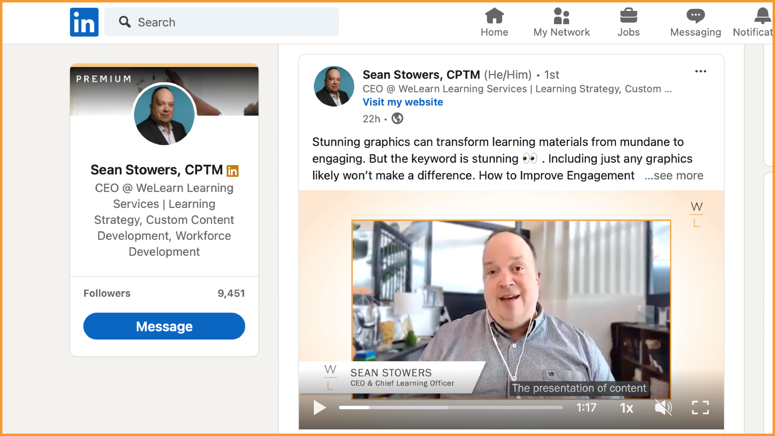 These videos help Sean stand out and stay top-of-mind the next time a current — or future — client has a need for learning and development services.